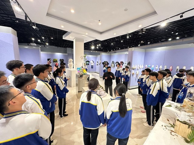 专业引路:初探艺术魅力 “欢迎同学们来到西华大学!”美术与设计学院党委副书记熊必刚热情接待了师生代表,为同学们进行展览讲解,他还向同学们详细介绍了西华大学的学科门类和美术与设计学院的专业特色及丰富多彩的系列活动。在导览中,他结合生活中智能产品设计和产品包装等日常实例,阐释了设计学作为交叉学科的专业特点和发展前景与社会需求,并向在场同学们介绍,“西华的大学生不仅要掌握扎实的专业和理论知识,还要具备创新思维和社会责任感。希望同学们在高中的学习与生活中,保持对未知的好奇与探索的勇气,敢于实践”。