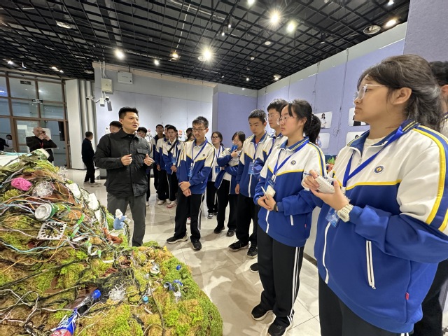 多彩校园文化:激扬青春梦想 研学期间,同学们还参观了美术与设计学院“从客体到主体——公共装置与智能交互”课程展。废旧材料与智能技术的碰撞,点燃艺术与科技融合的火花,引发阵阵赞叹。