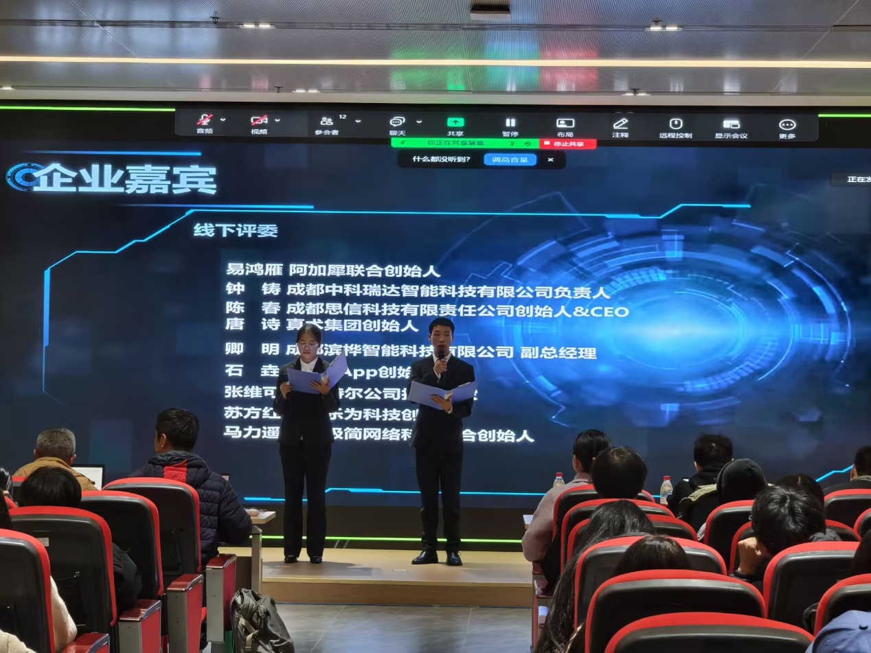 比赛开始,来自郫都、宜宾两个校区11支队伍30余名同学在创意组和技术组两个赛道展开激烈角逐。经过项目路演和评委提问环节,灵动随行和绿影智割者分别获得创意组、技术组一等奖。
