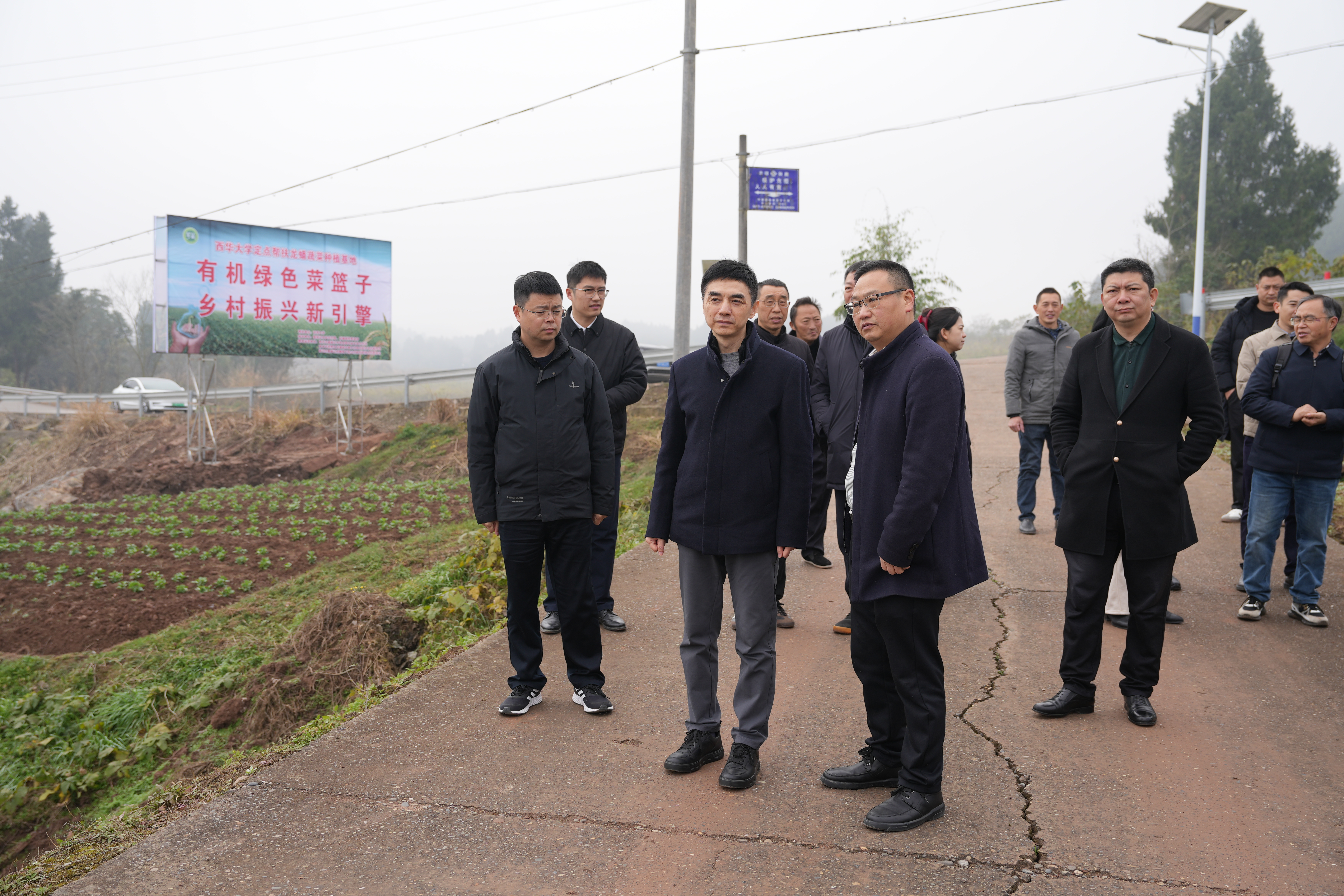 2025年12月25日,西华大学党委副书记、校长李秋实带队赴南充市嘉陵区龙蟠镇调研督导定点帮扶工作。南充市嘉陵区委书记张青松,区委副书记钟源,区农业农村局局长何毅陪同调研。嘉陵区龙蟠镇及学校相关职能部门负责人参加调研。 实地督导,检视产业帮扶实效 李秋实一行先后深入龙蟠镇下院山村、水堰口村,围绕乡村产业发展与基础设施建设等重点工作开展调研督导。实地了解了下院山村文化院坝建设及公共服务阵地运行情况,详细察看粮食烘干生产线建设进展;随后赴学校注资30万元,由龙蟠镇为壮大村集体经济引入的蔬菜种植基地,听取龙蟠镇党委书记孙伟现场汇报,督导项目落实;沿途还调研了水堰口村前期引进的桑叶烘干中心生产运营与带农增收情况。