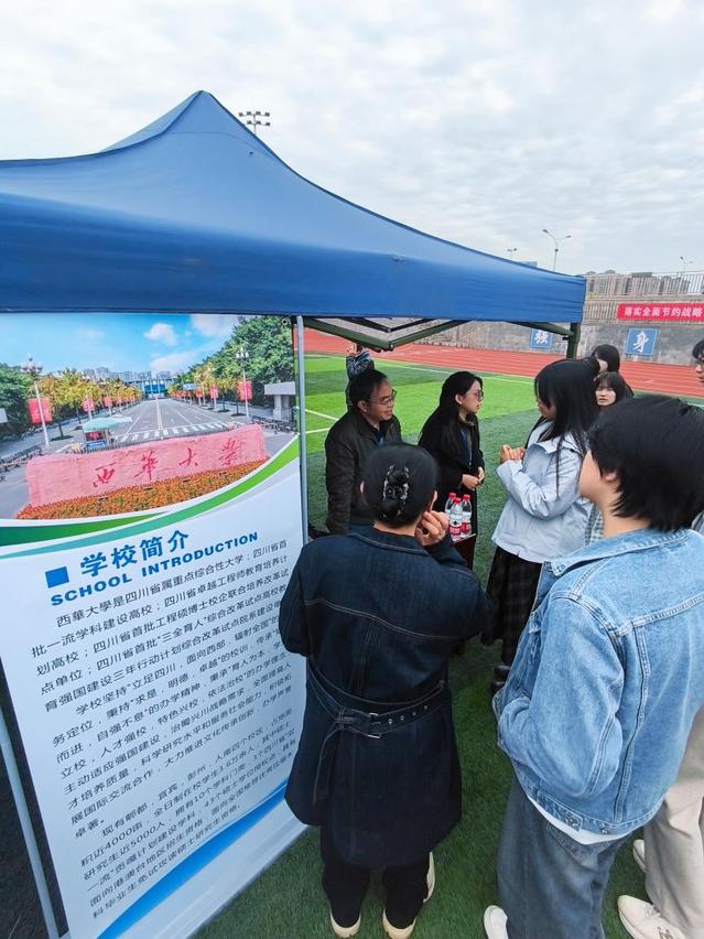 活动现场,西华大学驻村团队设立的咨询摊位前人头攒动、气氛热烈。针对职高学生多元化的成长路径,团队老师坚持“分类指导、尊重选择”的原则:对于希望直接就业的学生,老师们结合产业发展趋势与岗位需求,帮助分析技能优势与行业前景;对于有升学意愿的学生,则围绕高校专业设置、升学政策、职教高考路径等问题进行细致解答;对于尚在探索阶段的学生,老师们耐心倾听、启发思考,鼓励他们在实践中逐步明晰方向。
