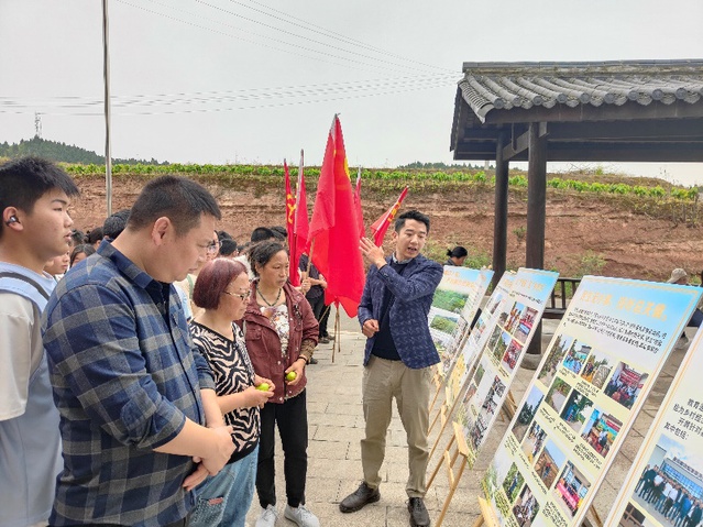 为深化校地帮扶协作实效,让学生近距离感受乡村振兴成果,4月3日,西华大学驻村工作队熊江、杨磊组织嘉陵区龙蟠初中学生走进水堰口村开展研学活动。学生们通过参观农桑种植基地、大蚕饲育车间、村党群服务中心及帮扶成果展板,沉浸式体验乡村发展脉搏,深刻感悟校地帮扶带来的蜕变。 一、党建引领聚合力,帮扶成果“可视化” 活动首站,师生们在水堰口村党群服务中心广场集合。西华大学驻村工作队第一书记熊江向同学们介绍了水堰口村的发展变迁,从产业扶持到民生改善,从基础设施建设到人才培育赋能,一幅“党建引领、校企共建”的帮扶画卷徐徐展开。同学们驻足聆听,眼中满是对乡村振兴实践的憧憬与思索。